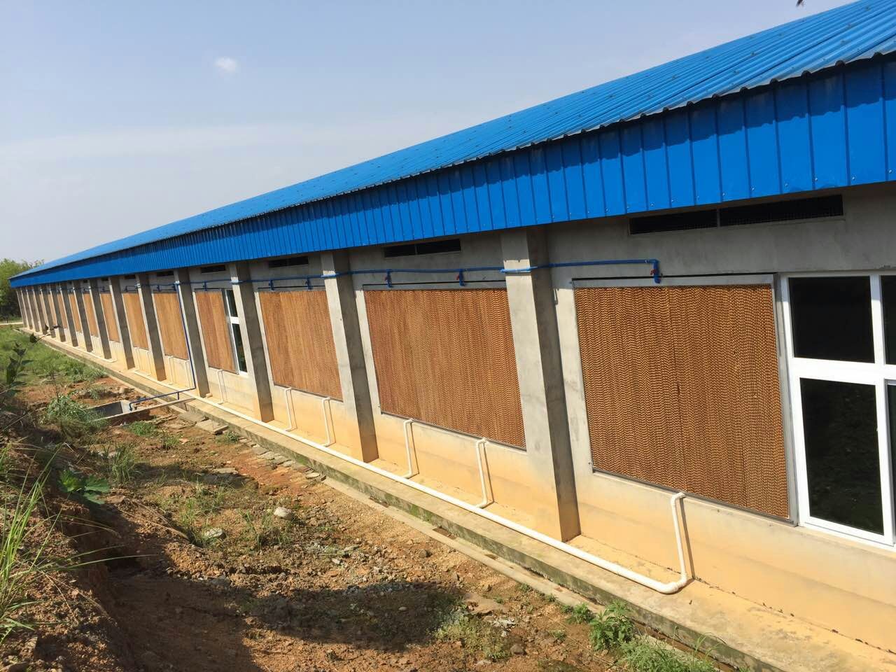我国养殖业发展迅速。尤其在养猪规模化、集约化养猪生产中 , 猪群整体性健康水平的好坏、生长速度,繁殖季节能否稳定高产、分娩舍内仔猪的保育效果等都直接受到猪舍内空气环境的影响和制约,舍内空气环境控制的好坏是规模化养猪生产能否有效进行的重要因素。为了提高猪群整体的健康水平,提升规模化养猪的生产效率,必须对猪舍的环境进行有效的控制。猪场环境控制的新型降温系统——负压风机+降温湿帘系统,使用降温系统能有效的改善舍内空气的温、湿度保证猪群的健康生长。
