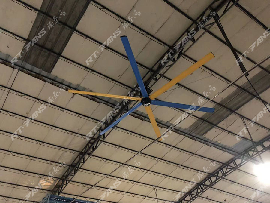 工业风扇,一种直径达7.3米的巨大吊扇!能最有效率的推动大量的空气运动,产生超大风量,转速仅需50RPM,使空间形成运动、循环气流场,是目前其他设备所不能比拟的。应用空气动力学原理和先进工艺制造的流线型扇叶,仅用1.5KW或更小的功率就可以驱动大量的空气,产生超大面积的自然微风系统,起到通风和降温的双重功能。工业风扇的优势就在于,直接而有效!它促进整个空间空气混合。其它的好处是消除鸟类和臭虫,也能避免其它通风方案容易产生的噪音、湿气带来的腐烂等。